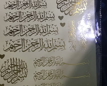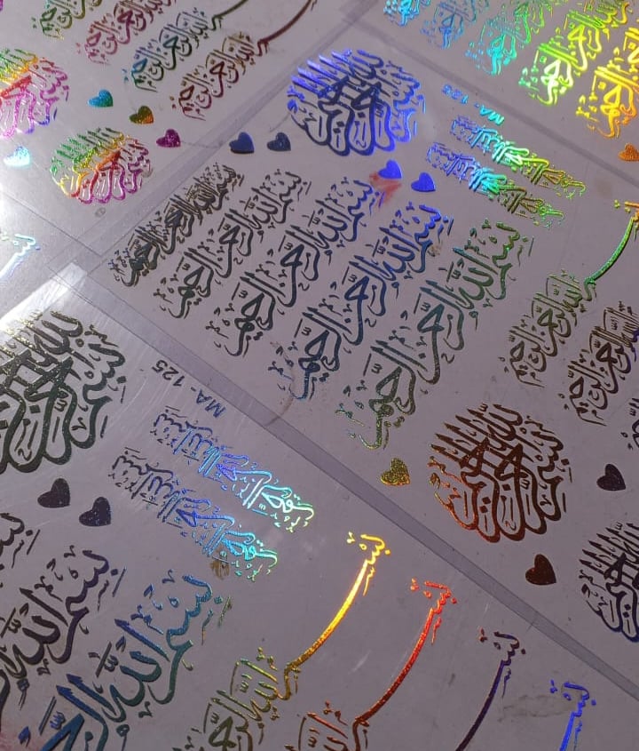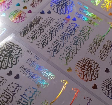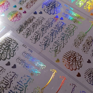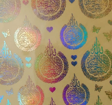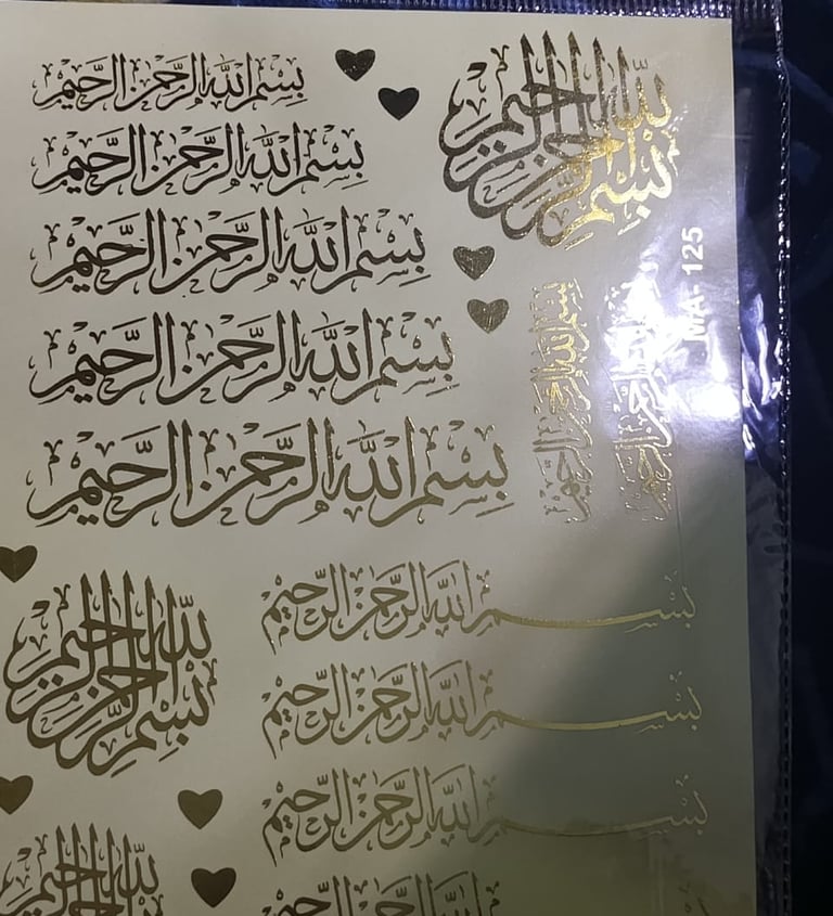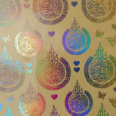 Multi Shaded Foil Printed Treansperant Sticker, Bismillah for Resin Art, Sheet Size A4