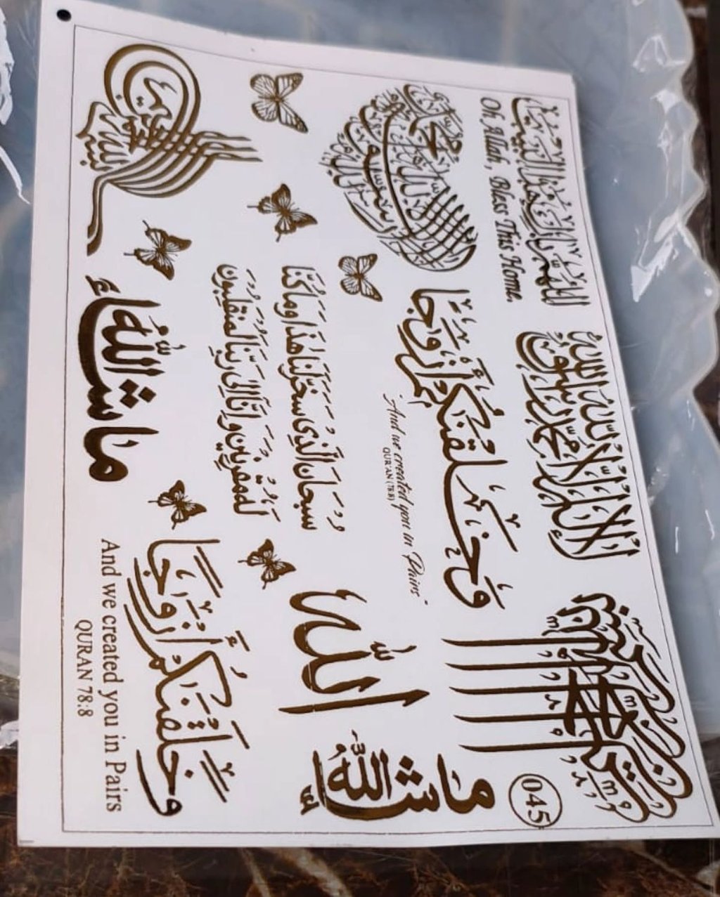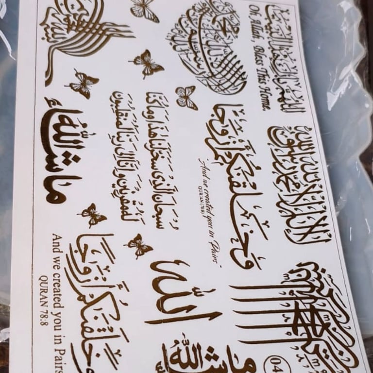 Golden Foil Printed Treansperant Sticker, islamic for Resin Art, Sheet Size A4